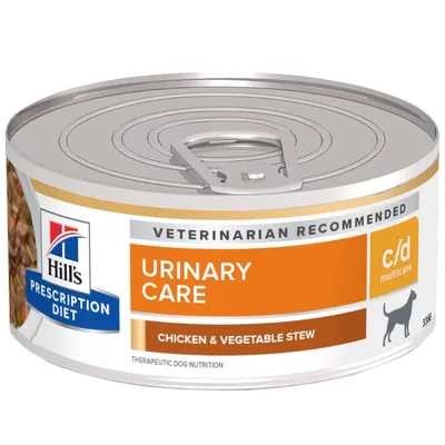 Hill's Prescription Diet c/d Multicare Canine Chicken & Added Vegetables é um alimento úmido, completo e balanceado feito de frango e vegetais, que fornece toda a nutrição que um cachorro precisa. Por favor, consulte seu veterinário para mais informações sobre como nossas rações Prescription Diet podem ajudar o seu cão a continuar vivendo uma vida feliz e ativa.