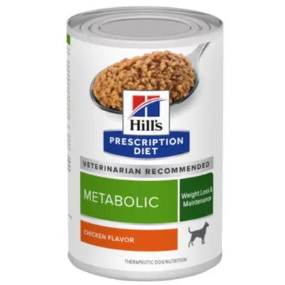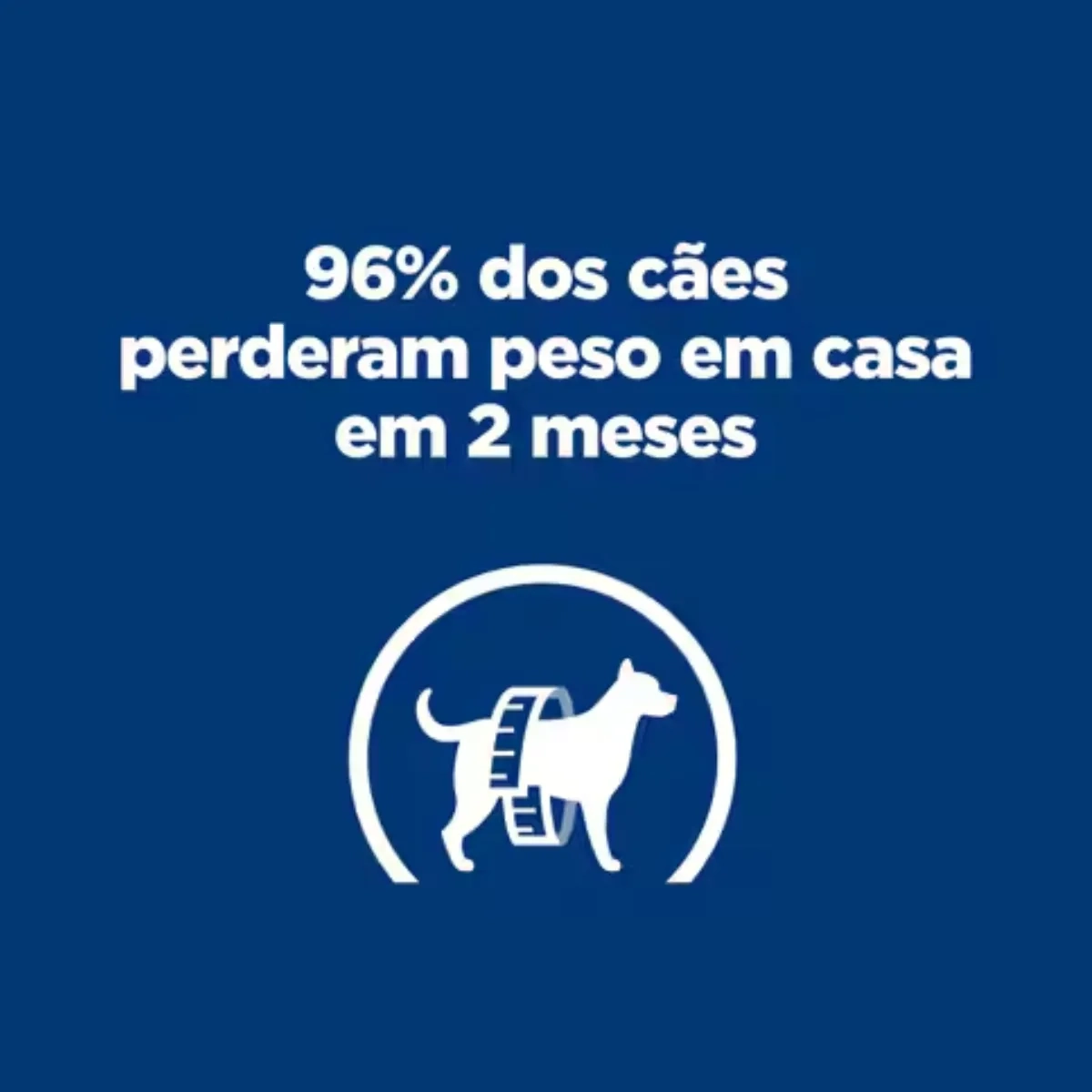 Os nutricionistas e veterinários da Hill's desenvolveram a Prescription Diet Metabolic, uma nutrição clínica formulada especialmente para ajudar cães a perder peso e manter essa redução naturalmente através da ativação do seu metabolismo único. Esse alimento estimula a habilidade natural dos cães de queimar gordura e mantém eles brincalhões e ativos. Sua mistura única de fibras ajudam a manter os cães sentindo-se satisfeitos e reduz a fome entre as refeições.Inclusive, 96% dos cães perderam peso em casa em 2 meses quando são alimentados com a nutrição de Metabolic. Esse alimento úmido é feito com sabor frango e tem um gosto irresistível que o seu cão vai amar.