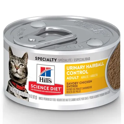 A ração úmida Hill's Science Diet Urinary Hairball Control é um alimento completo ideal para promover a saúde do sistema urinário e prevenir a formação de bolas de pelo.
