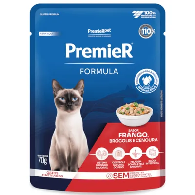 Alimento Úmido PremieR Formula para Gatos Adultos Porte Pequeno Sabor Frango, Brócolis e Cenoura 70g
