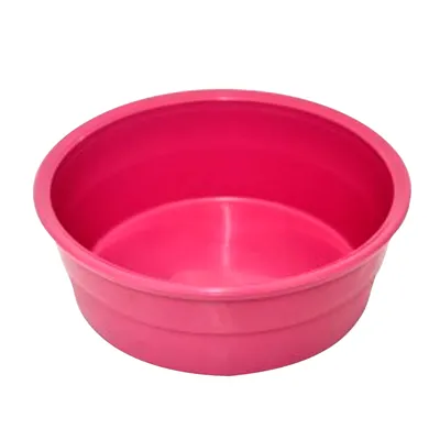 Comedouro de plástico regulável rosa com capacidade de 2600ml.
