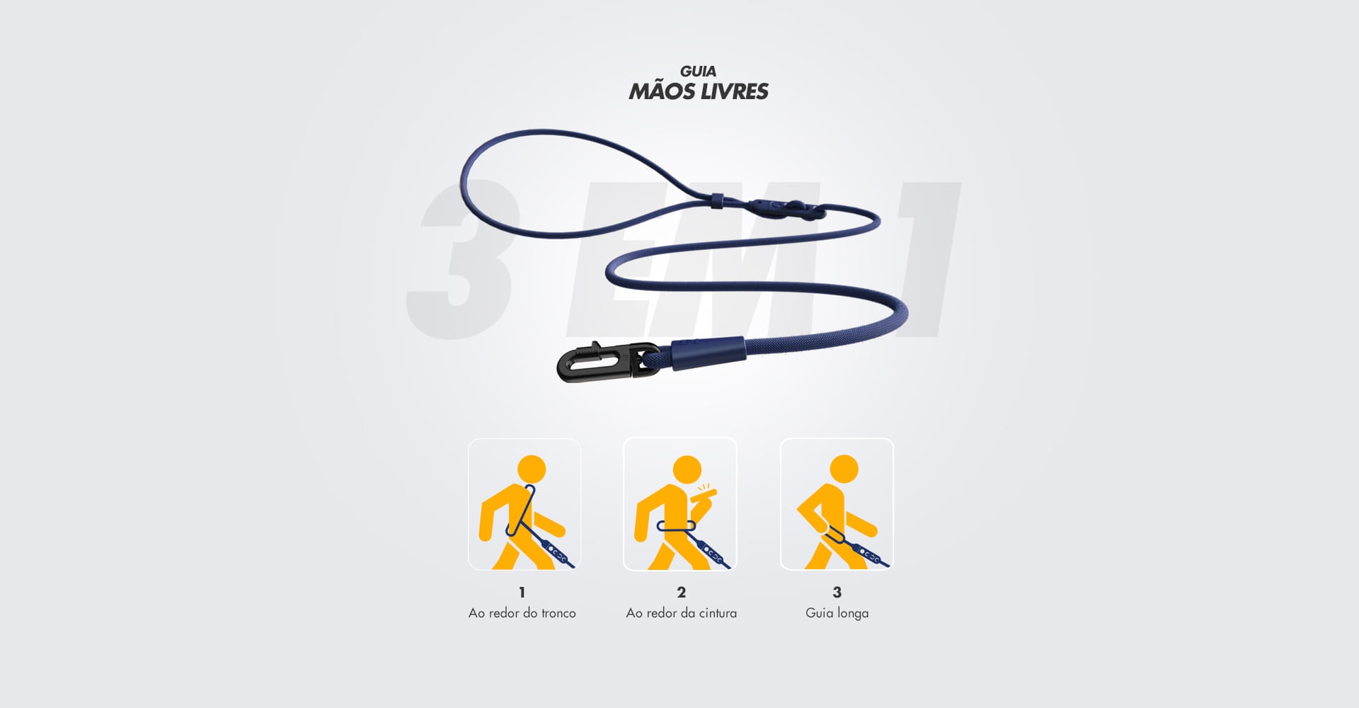 A Guia Mãos Livres para Cachorros Deep Blue é perfeita para andar, correr e se exercitar com seu cachorro sem perder a sensação de estar conectado. É super leve e pode ser usada ao redor da sua cintura, por sobre seu ombro ou segurando com as mãos, como uma guia convencional. O E-Zee lock tem a função tanto de regular/ajustar a guia ao seu corpo como de fecho para desprender e prender o seu cachorro com segurança num local próximo a você.