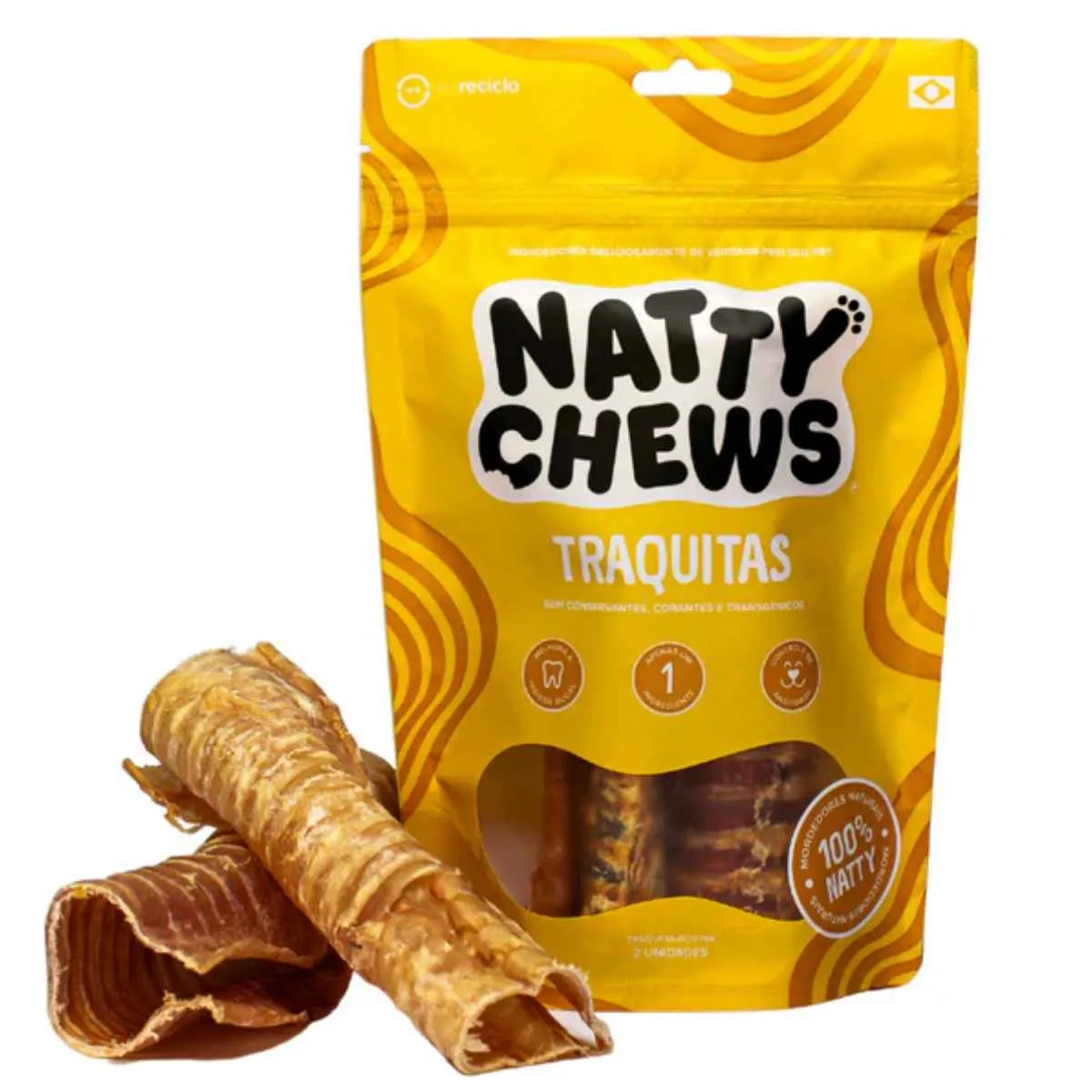 Mordedor Natty Chews Traquitas Traqueia Bovina Desidratada 2 Unidades Para Cães