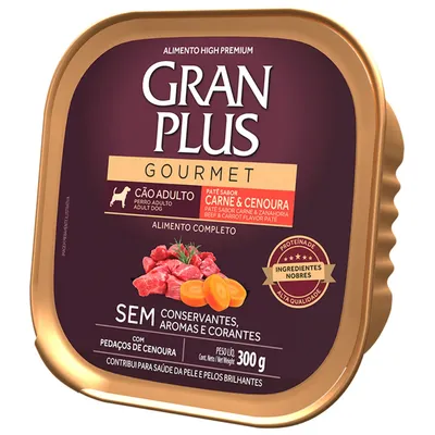 Patê GranPlus Gourmet para Cães Adulto Sabor Carne e Cenoura 300g