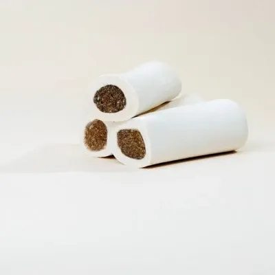 O Snack é composto de tíbia bovina e recheio de carne, oferecendo um sabor irresistível e uma textura que os cães adoram.