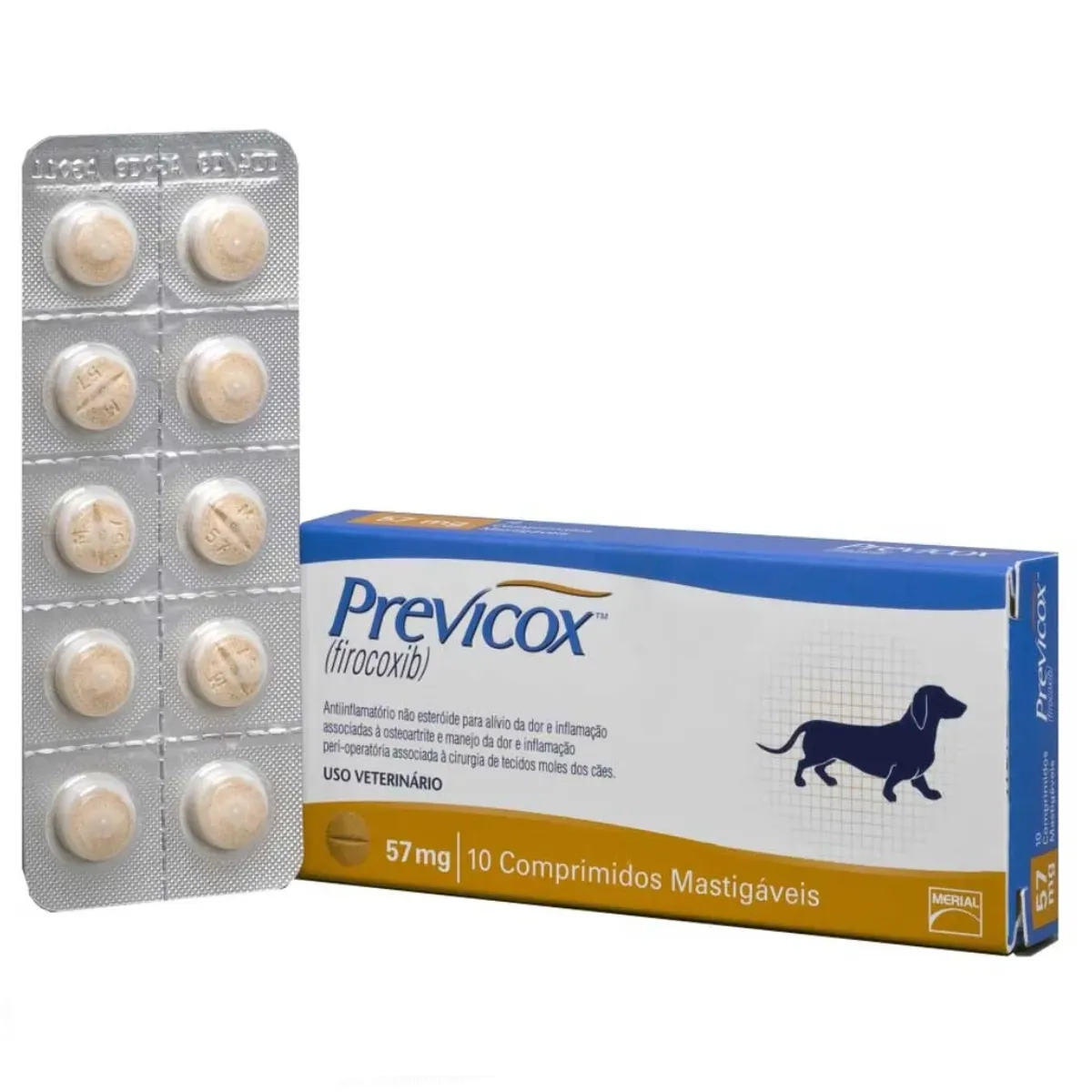 Anti-Inflamatório Merial Previcox 57mg 10 comprimidos possui efeito anti-inflamatório, analgésico e antipirético (contra febre). Eficácia comprovada para alívio dos sintomas da osteoartrite, como dificuldade de locomoção, claudicação ou relutância em se movimentar.