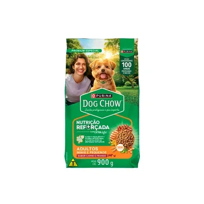 Ração Dog Chow Nutrição Reforçada para Cães Adultos de Porte Mini e Pequeno Sabor Carne, Frango e Arroz 900g