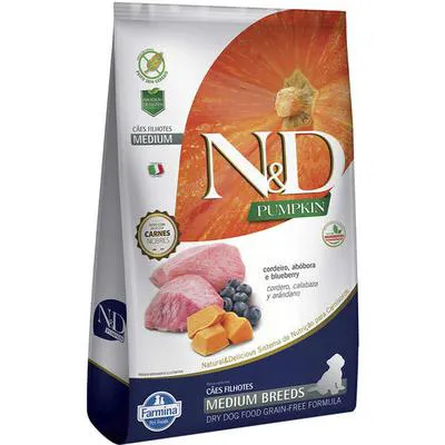 A Ração Farmina N&D Pumpkin Carnes Nobres Cordeiro para Cães Filhotes de Raças Médias é um alimento equilibrado que contribui para a saúde e crescimento adequado do seu filhote!