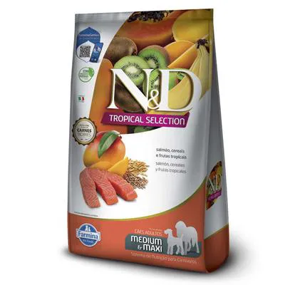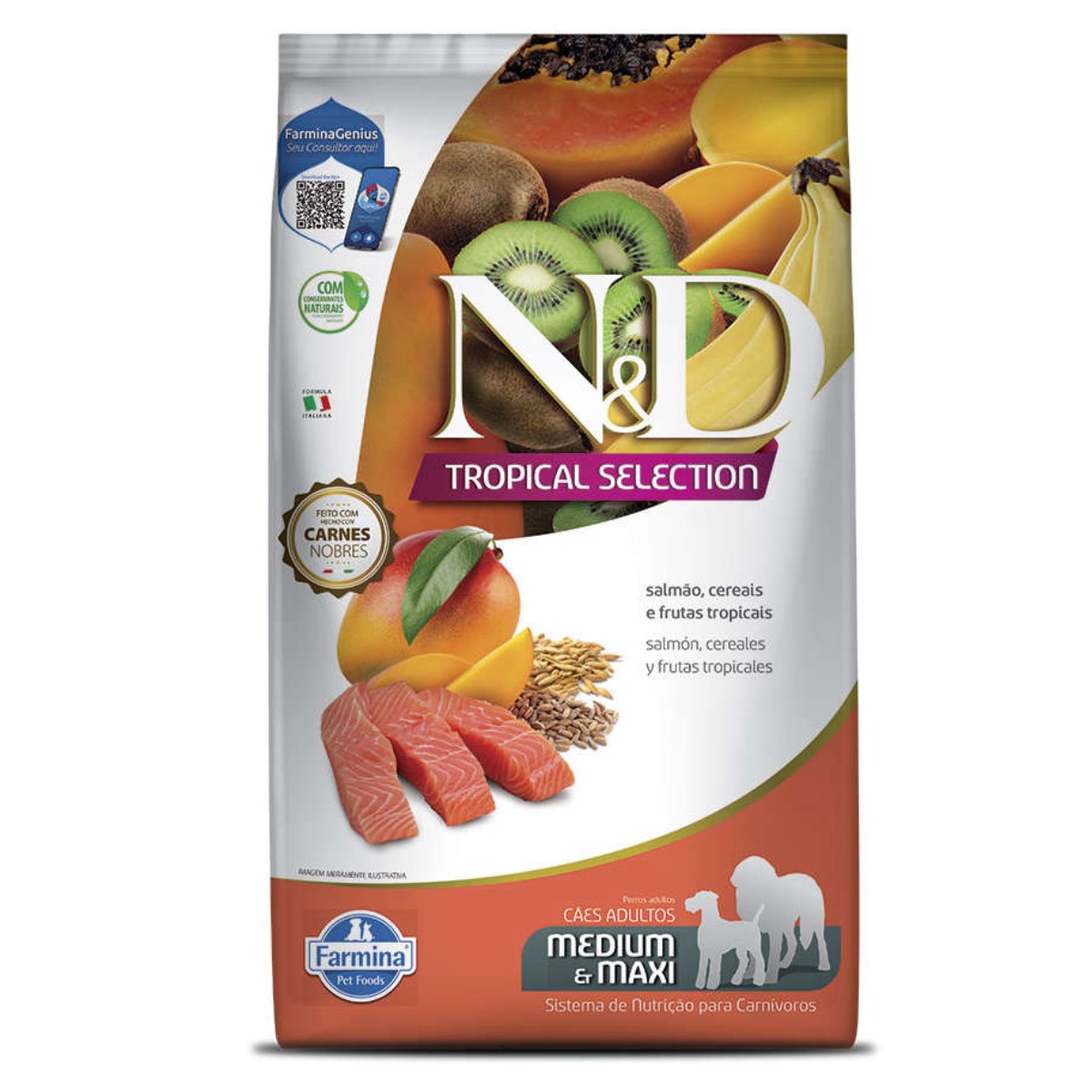 Ração Farmina N&D Tropical Selection para Cães Adultos de Porte Médio e Grande Sabor Salmão, Cereais e Frutas Tropicais 2Kg + 500g Grátis