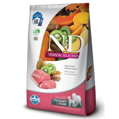 Ração Farmina N&D Tropical Selection para Cães Adultos de Porte Médio e Grande Sabor Suíno, Cereais e Frutas Tropicais 2Kg + 500g Grátis