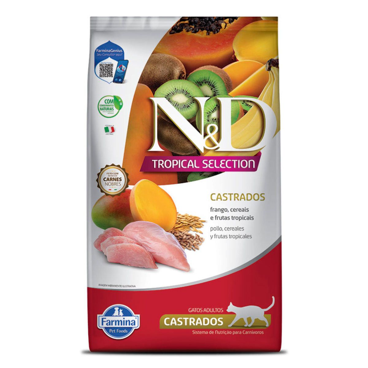 Ração Farmina N&D Tropical Selection para Gatos Adultos Castrados Sabor Frango, Cereais e Frutas Tropicais 1,5Kg