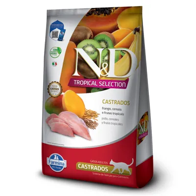 Ração Farmina N&D Tropical Selection para Gatos Adultos Castrados Sabor Frango, Cereais e Frutas Tropicais 7Kg