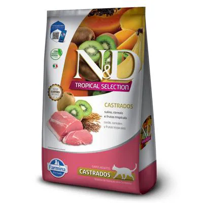 Ração Farmina N&D Tropical Selection para Gatos Adultos Castrados Sabor Suíno, Cereais e Frutas Tropicais 1,5Kg