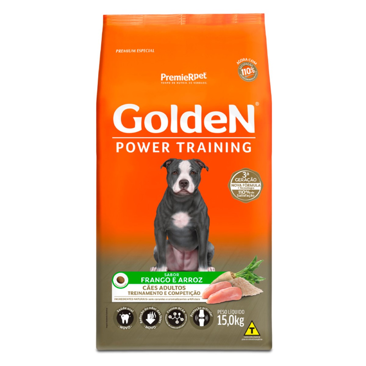 Ração GoldeN Power Training para Cães Adultos Sabor Frango e Arroz 15Kg