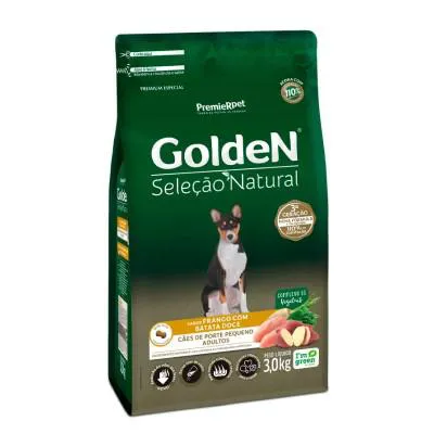 Ração Golden Seleção Natural para Cães Adultos Pequeno Porte Sabor Frango com Batata Doce 3Kg