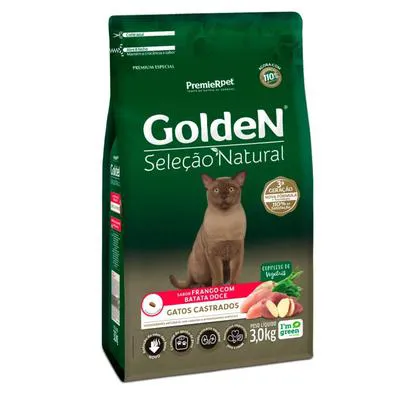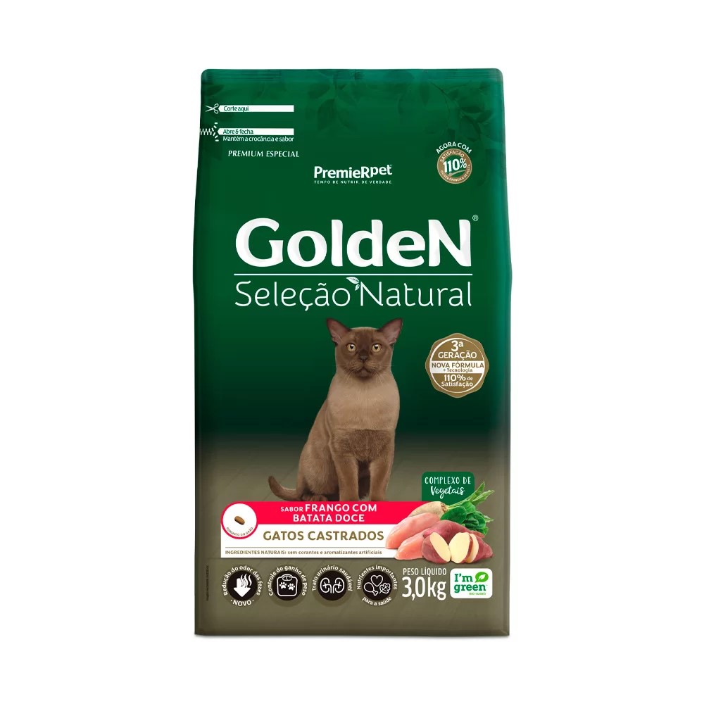 Ração GoldeN Seleção Natural para Gatos Castrados Sabor Frango com Batata Doce 3Kg