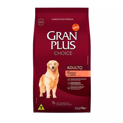 Ração GranPlus Choice para Cães Adultos Sabor Frango e Carne 20Kg