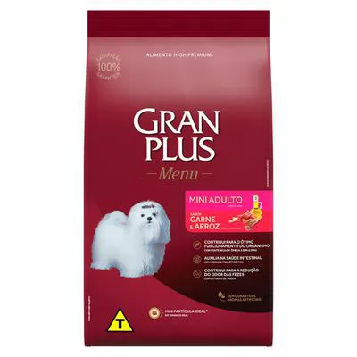 Ração GranPlus Menu para Cães Adultos de Porte Mini Sabor Carne e Arroz 1Kg