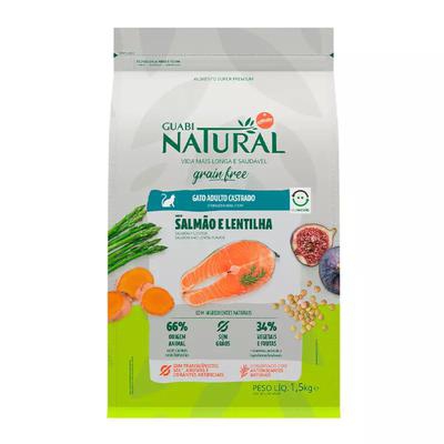 Ração Guabi Natural Grain Free para Gatos Castrados Sabor Salmão e Lentilha 1,5Kg