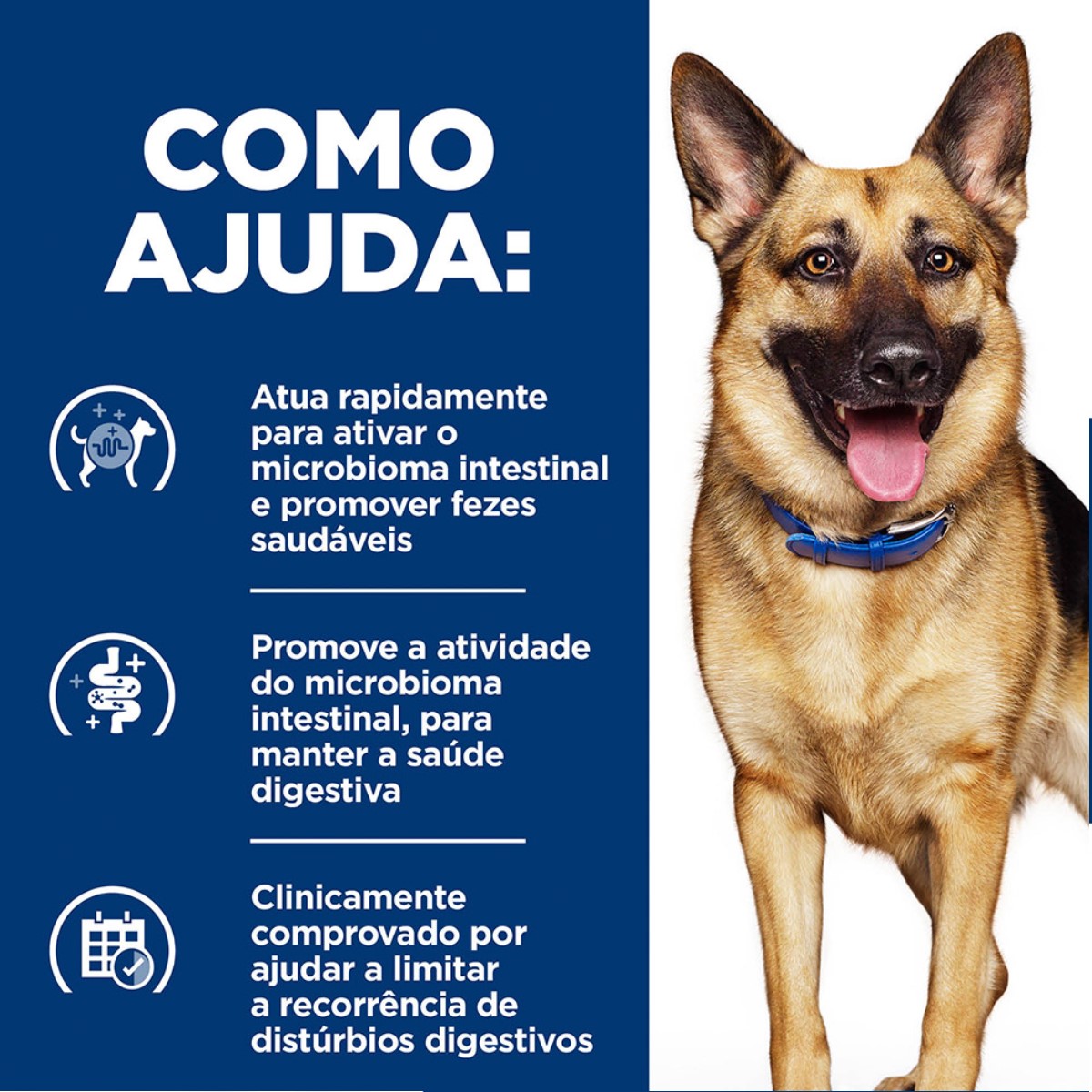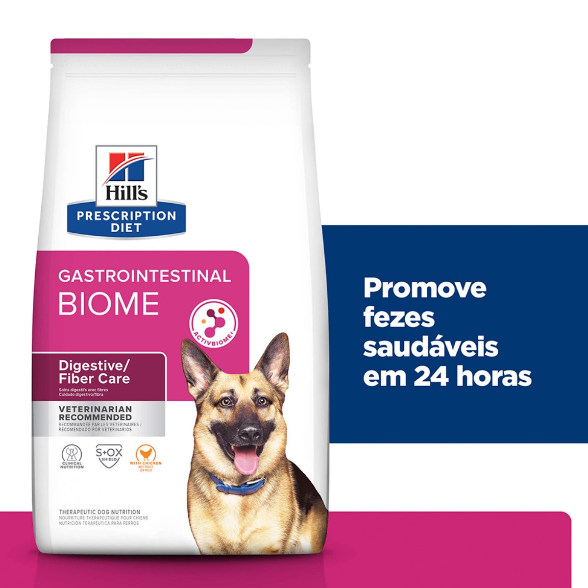 Os nutricionistas e veterinários da Hill's formularam a nutrição Prescription Diet Gastrointestinal Biome com ActivBiome+, uma tecnologia proprietária de ingredientes, clinicamente comprovada para ajudar a firmar fezes moles em 24 horas e reduzir o risco de recorrência.