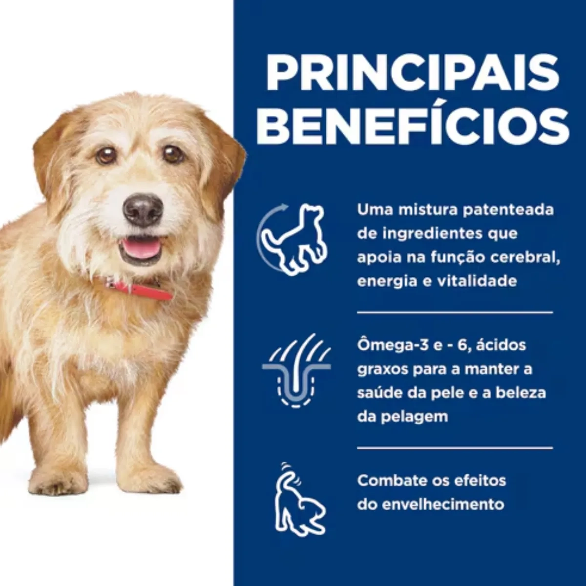 A ração super premium seca para cães Hill's Science Diet Adult 7+ Senior Vitality Small & Mini é um alimento completo seco indicado para combater os efeitos do envelhecimento em cães adultos de raças pequenas e mini, acima de 7 anos de idade, até 11 kg.