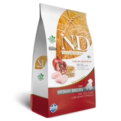 Ração N&D Ancestral Grain para Cães Filhotes Raças Médias: Sabor Frango e Romã - 10.1Kg