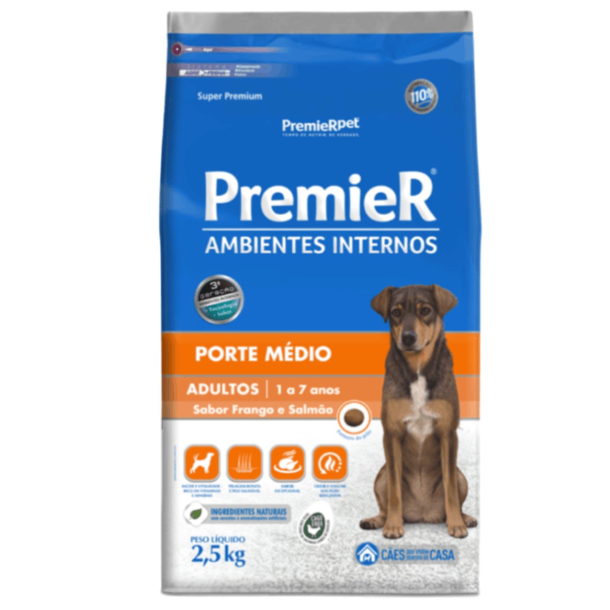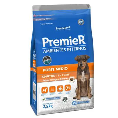 Ração PremieR Ambientes Internos Cães Adultos Porte Médio Sabor Frango e Salmão 2,5Kg