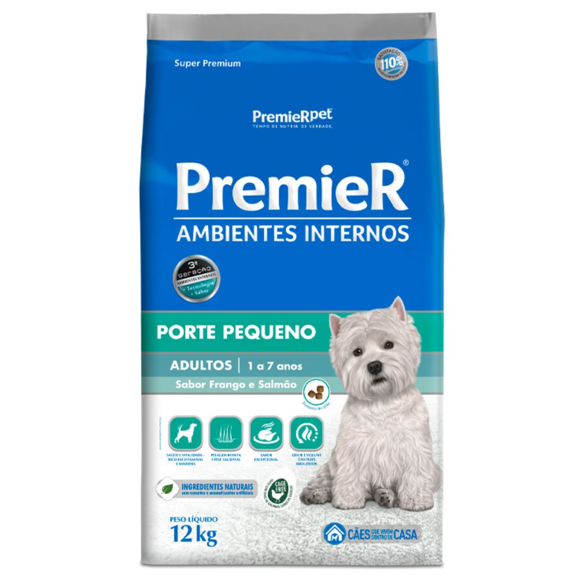 Ração PremieR Ambientes Internos Cães Adultos Porte Pequeno Sabor Frango e Salmão 12Kg