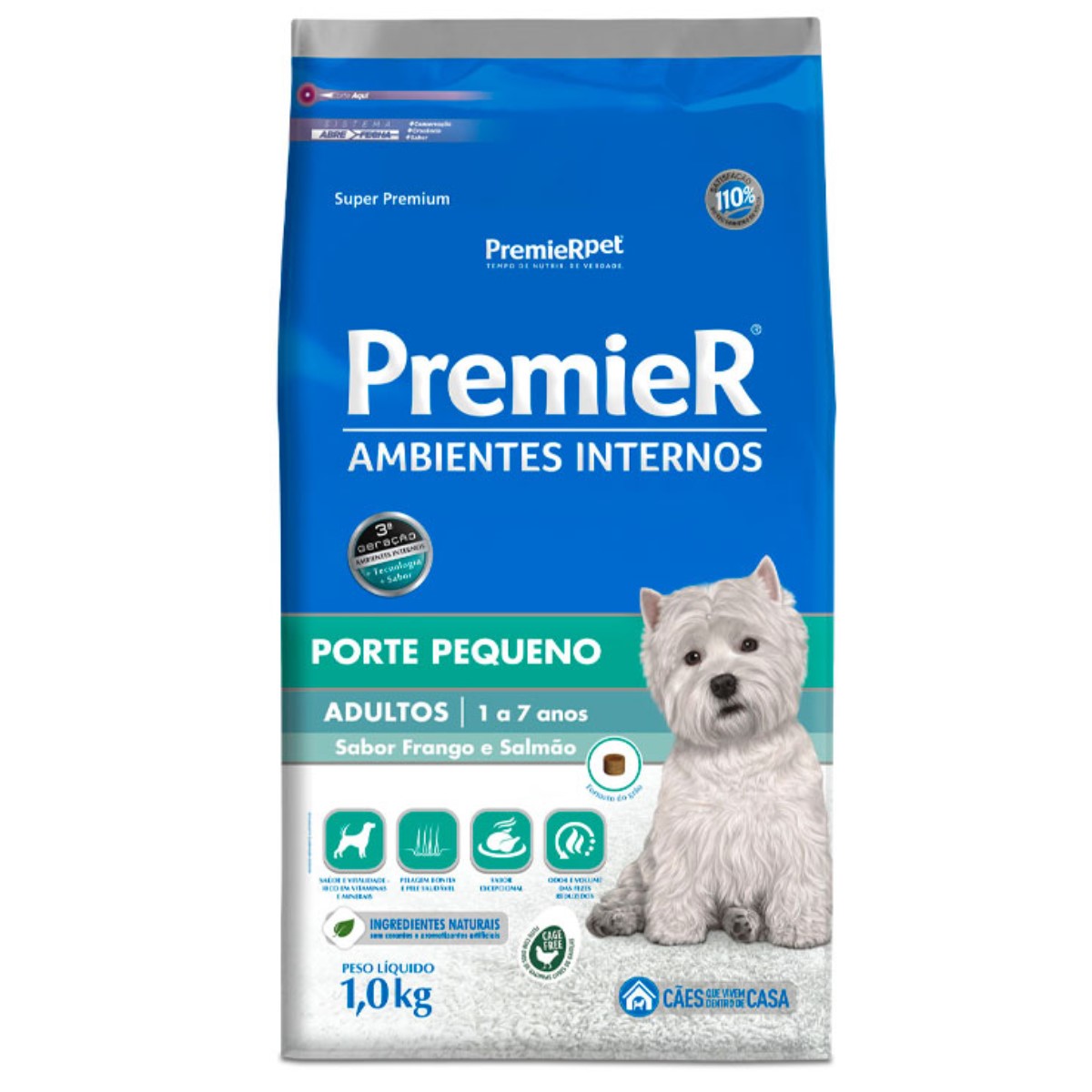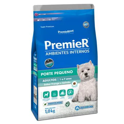 Ração PremieR Ambientes Internos Cães Adultos Porte Pequeno Sabor Frango e Salmão 1Kg