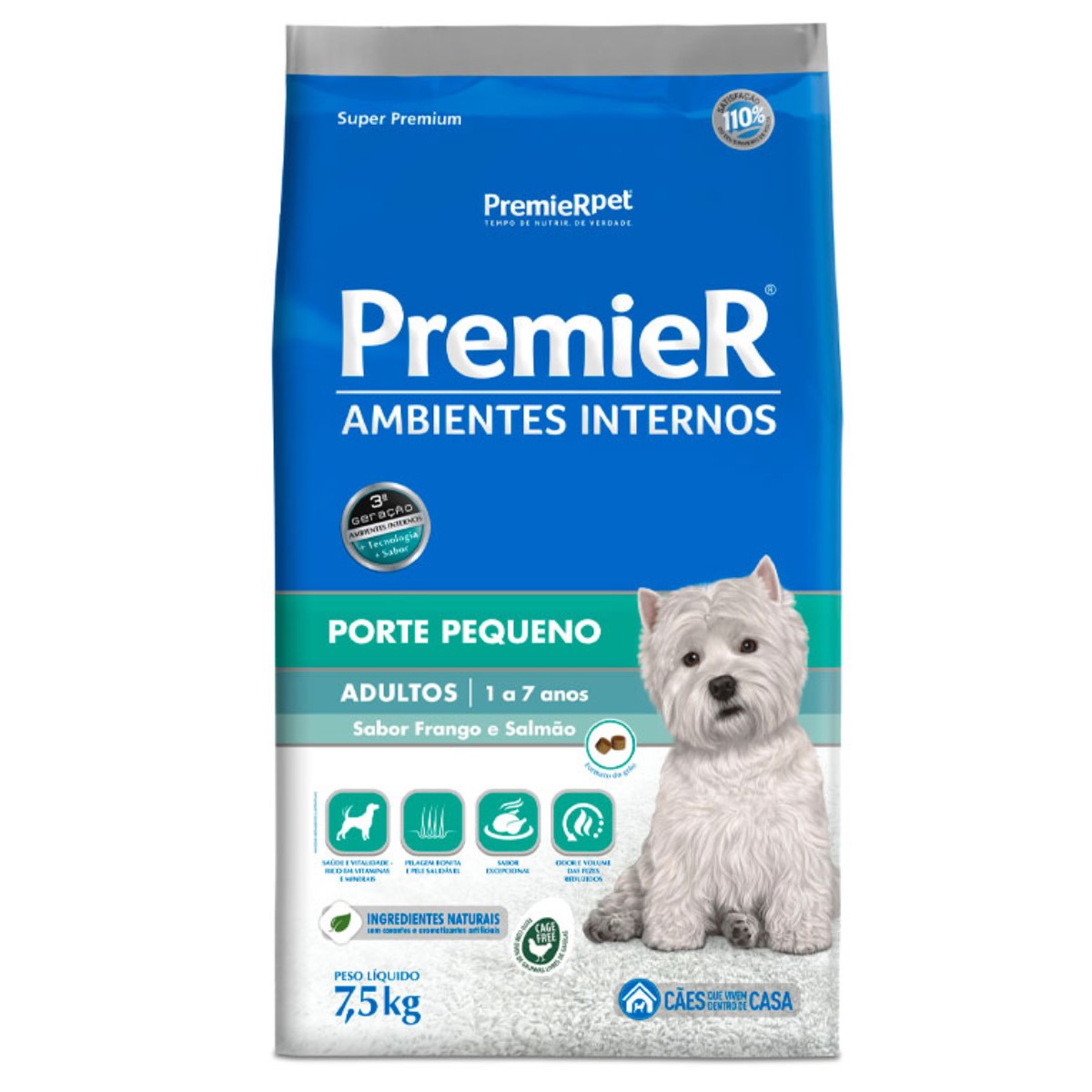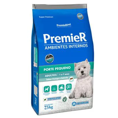 Ração PremieR Ambientes Internos Cães Adultos Porte Pequeno Sabor Frango e Salmão 7,5Kg