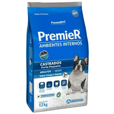 Ração PremieR Ambientes Internos Cães Adultos Porte Pequeno Sabor Frango e Salmão Castrados 12Kg