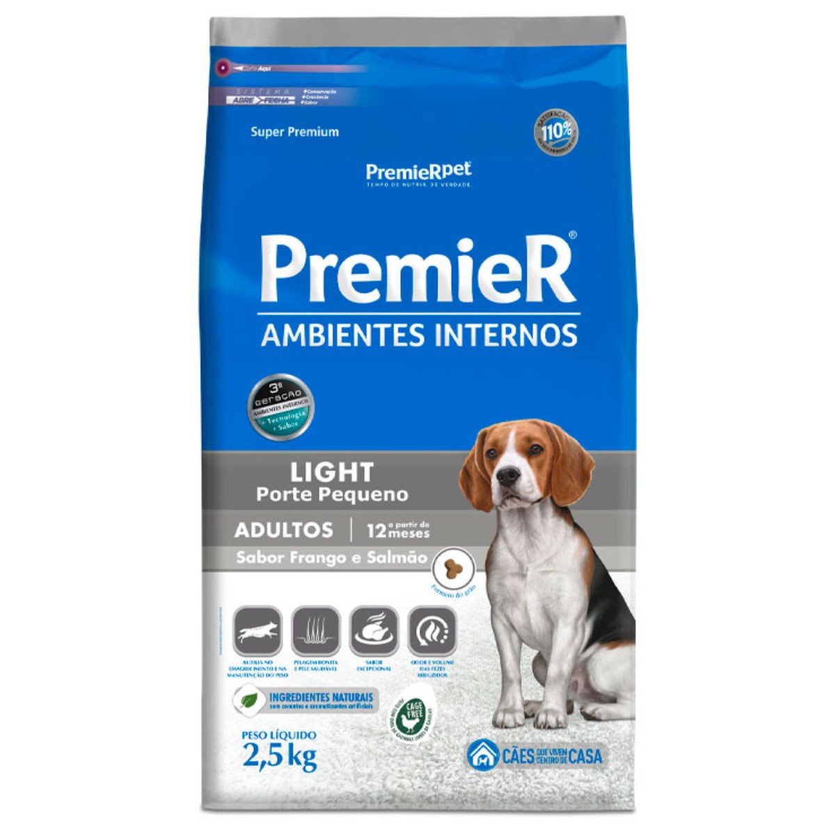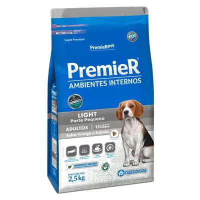 Ração PremieR Ambientes Internos Cães Adultos Porte Pequeno Sabor Frango e Salmão Light 2,5Kg