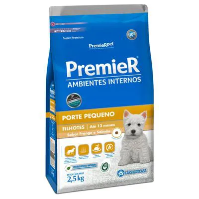 Ração PremieR Ambientes Internos Cães Filhotes Porte Pequeno Sabor Frango e Salmão 2,5Kg
