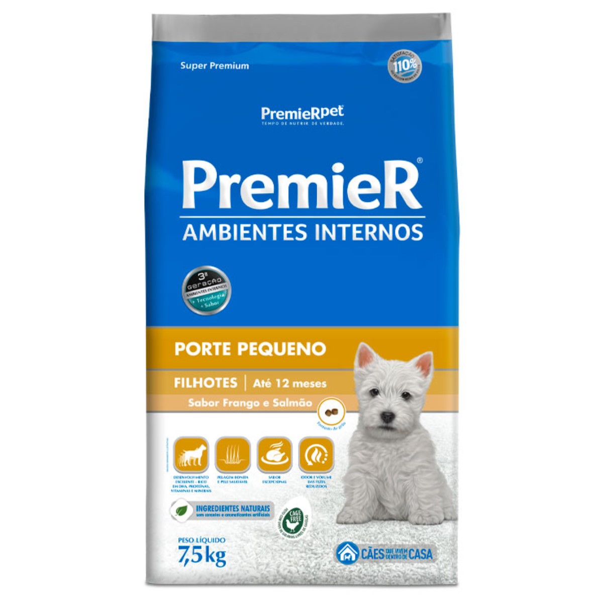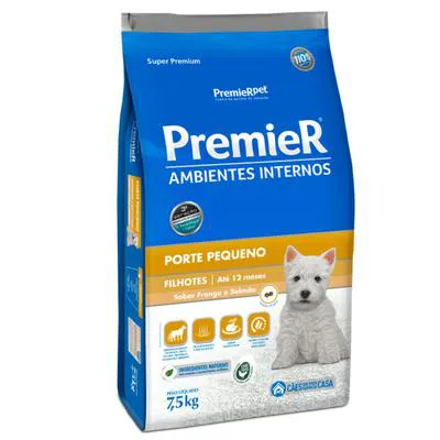 Ração PremieR Ambientes Internos Cães Filhotes Porte Pequeno Sabor Frango e Salmão 7,5Kg