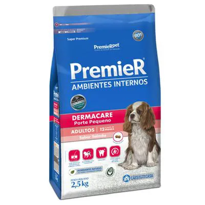 Ração PremieR Ambientes Internos Dermacare para Cães Adultos Porte Pequeno Sabor Salmão 2,5Kg