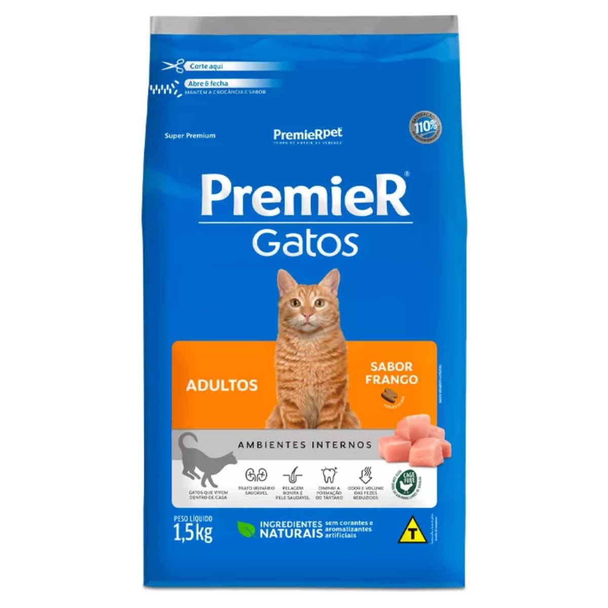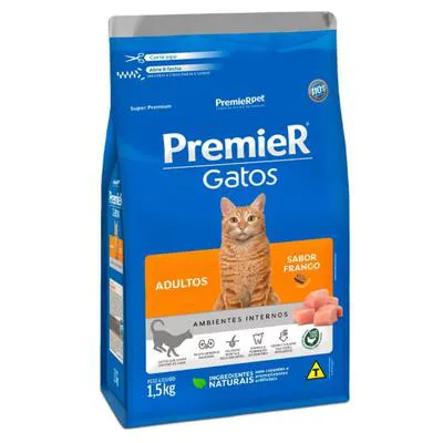 Ração PremieR Ambientes Internos para Gatos Adultos Sabor Frango 1,5Kg
