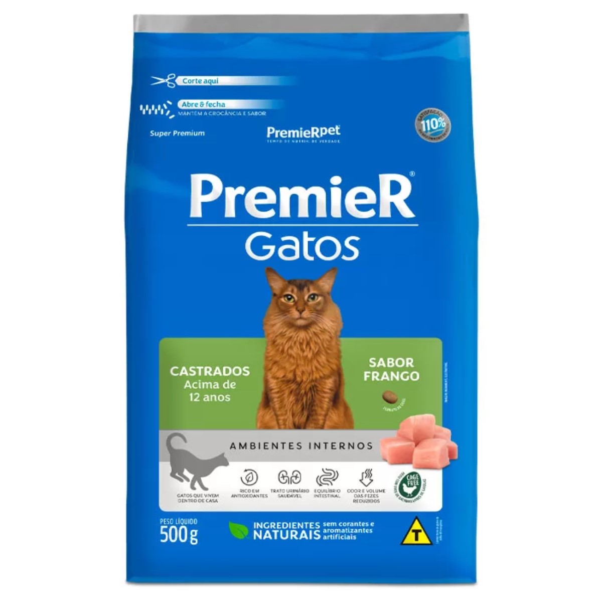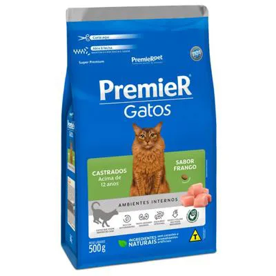 Ração PremieR Ambientes Internos para Gatos Castrados acima de 12 anos Sabor Frango 500g