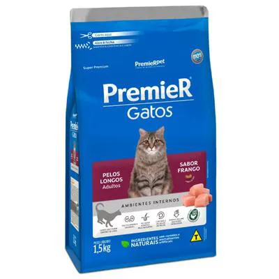 Ração PremieR Ambientes Internos para Gatos Pelos Longos Adultos Sabor Frango 1,5Kg