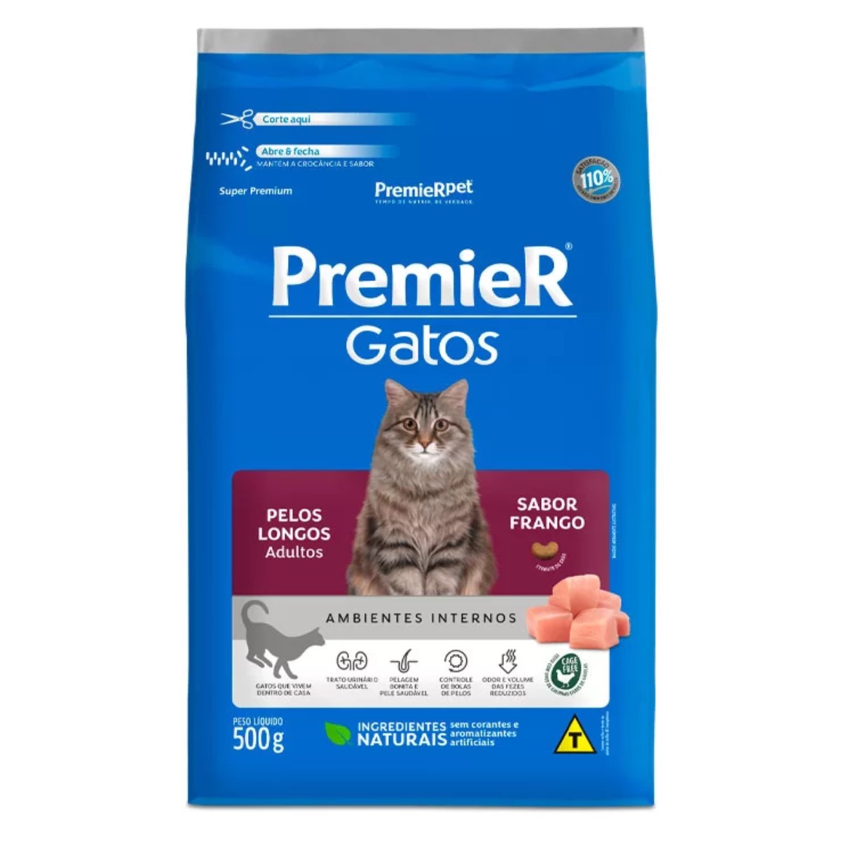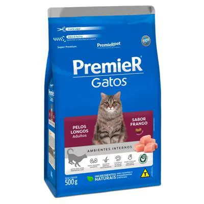 Ração PremieR Ambientes Internos para Gatos Pelos Longos Adultos Sabor Frango 500g