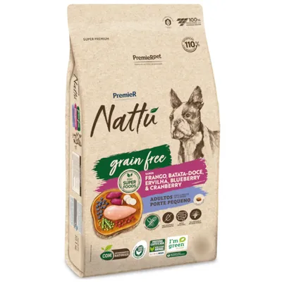 Ração PremieR Nattu para Cães Adultos de Porte Pequeno Grain Free Sabor Frango, Batata Doce, Ervilha, Blueberry e Cranberry