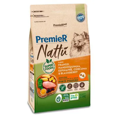Ração Premier Nattu para Cães Adultos de Porte Pequeno Sabor Mandioquinha 2,5Kg