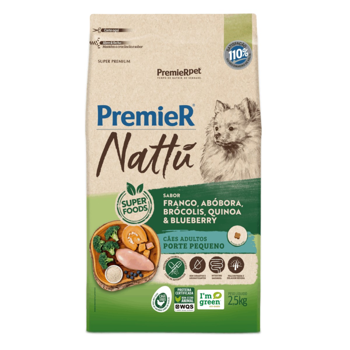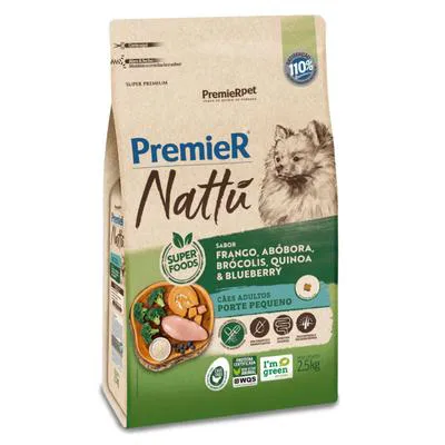 Ração PremieR Nattu para Cães Adultos Porte Pequeno Sabor Frango, Abóbora, Brócolis, Quinoa e Blueberry 2,5Kg