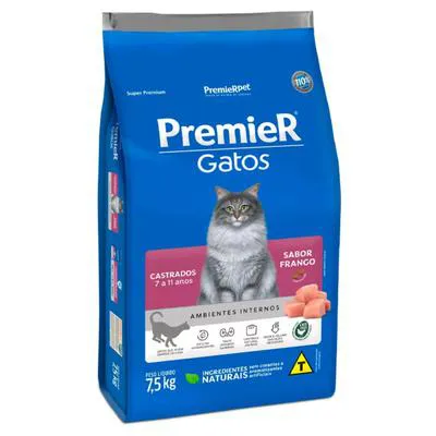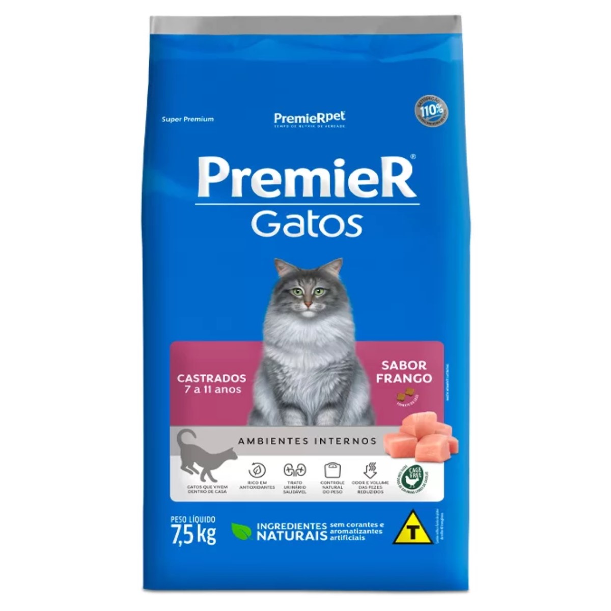 Ração PremieR para Gatos Castrados 7 a 11 anos Sabor Frango 7,5Kg