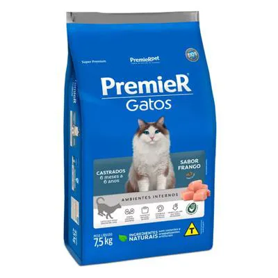 Ração Premier para Gatos Castrados de 6 meses a 6 anos Sabor Frango 7,5Kg