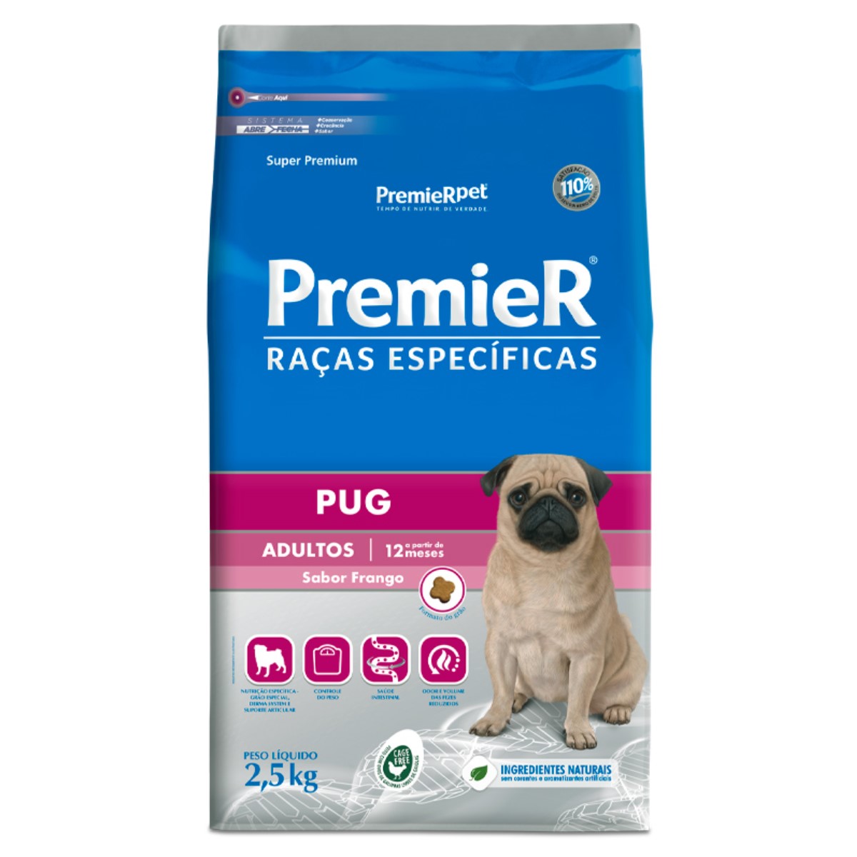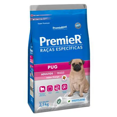 Ração PremieR Raças Específicas Pug Adultos Porte Pequeno Sabor Frango 2,5Kg