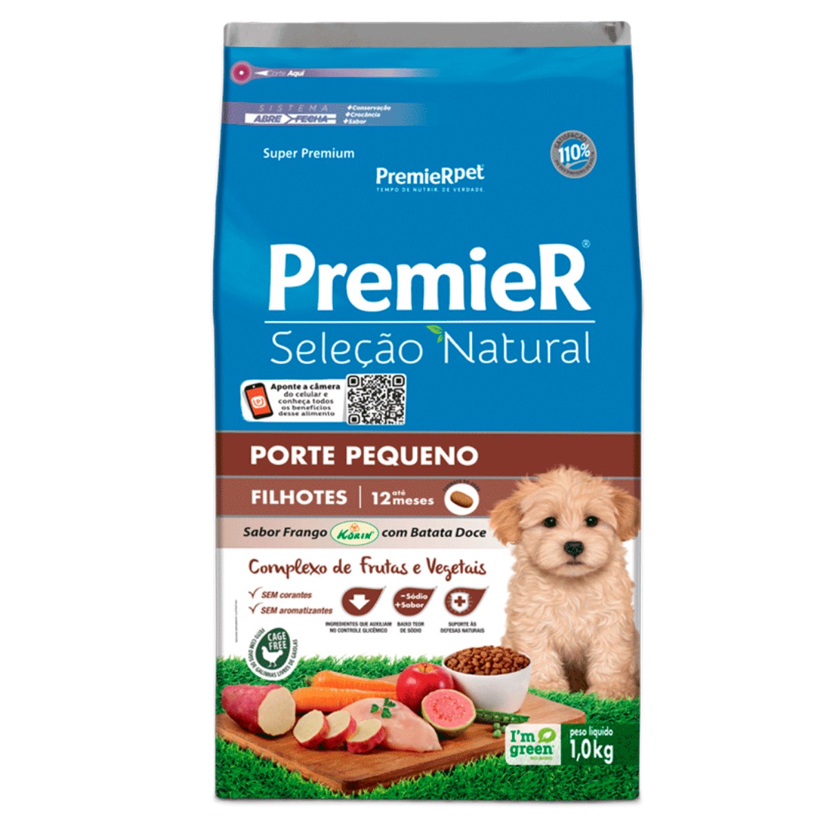 Ração PremieR Seleção Natural Cães Filhotes Porte Pequeno Sabor Frango Korin & Batata-doce 1Kg