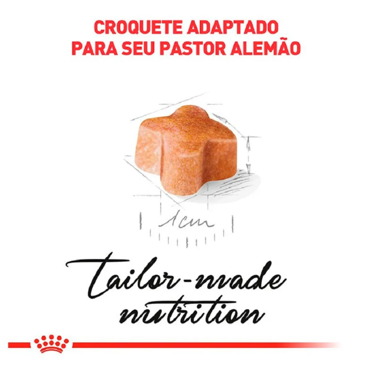 A fórmula, tamanho, formato e textura dos croquetes são adaptados para o filhote de Pastor Alemão. A coloração dos croquetes pode variar devido aos ingredientes naturais.