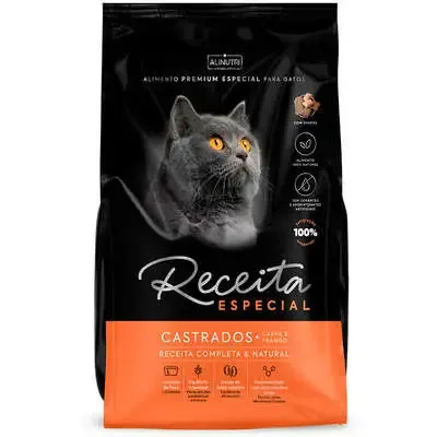 Ração Seca Alinutri Receita Especial Premium para Gatos Adultos Castrados Sabor Carne e Frango 3Kg