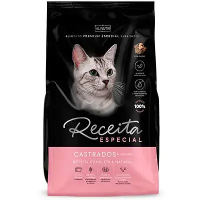 Ração Seca Receita Especial Premium para Gatos Adultos Castrados Sabor Salmão 10,1Kg