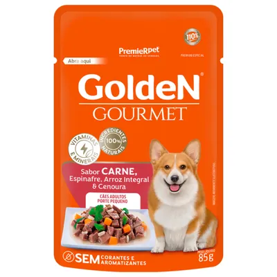 Ração Úmida GoldeN Gourmet Cães Adultos de Porte Pequeno Sabor Carne, Espinafre, Arroz Integral e Cenoura 85g